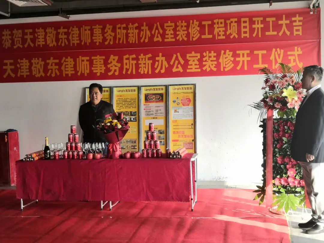 旷世国际大厦五矿物业孙总代表五矿物业对天津敬东律师事务所新办公室装修开工表示祝贺。对于今后继续与敬东律所合作感到荣幸,敬东律所能继续选择五矿物业是对五矿物业近几年的工作的一种认可,也祝愿天津敬东律师事务所继续蓬勃发展。随后,龙发装饰华工长、设计师张总分别上台发言,对新办公室装修开工吉日表示祝贺。