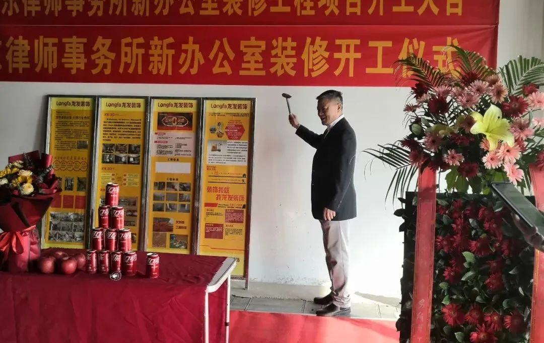 一锤,平安顺心;二锤,万事顺利;三锤,开工大吉。随着礼炮绽放,胡有斌主任手持礼锤,敲响新办公室装修开工的序章!参加开工仪式的全体人员共同举杯,庆祝这一美好时刻,恭祝天津敬东律师事务所新办公室装修开工大吉!